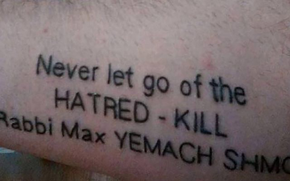 The story took a dark and ominous twist when it was reported that Karelefsky had a tattoo on his arm that read, “Never let go of the hatred – KILL Rabbi Max YEMACH SHMO.” The words Yemach Shmo in Hebrew are generally reserved for cruel enemies of the Jewish people such as Adolf Hitler and other bombastic miscreants that have sought to annihilate the Jewish nation. Photo Credit: Facebook